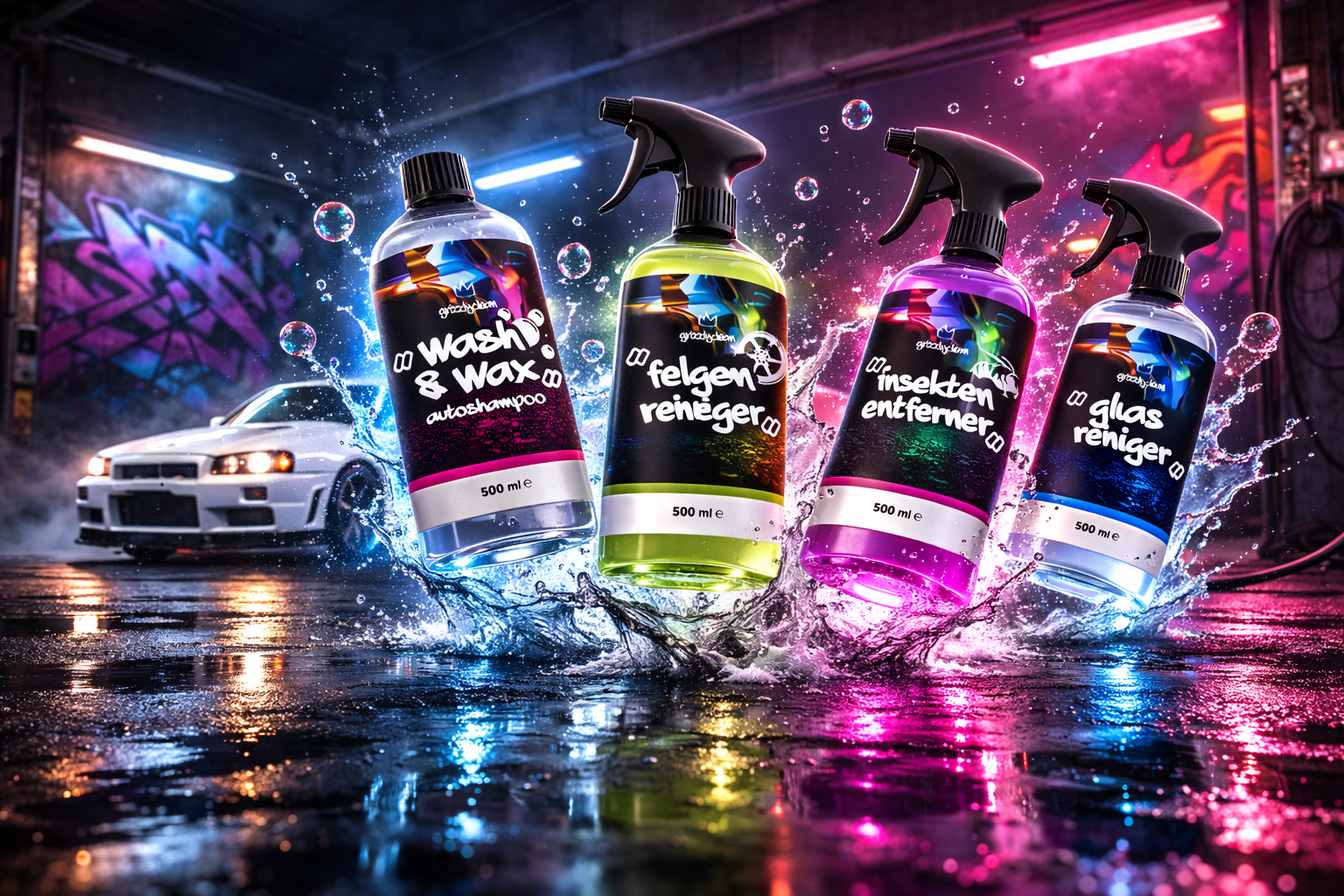 Unsere Reiniger wurden speziell für Fahrzeuge entwickelt und sind optimal auf die besonderen Anforderungen von Lack, Glas, Felgen und Kunststoffen abgestimmt. Durch sorgfältig ausgewählte Inhaltsstoffe sorgen sie für eine gründliche, aber zugleich schonende Reinigung – für strahlenden Glanz und langanhaltenden Schutz.