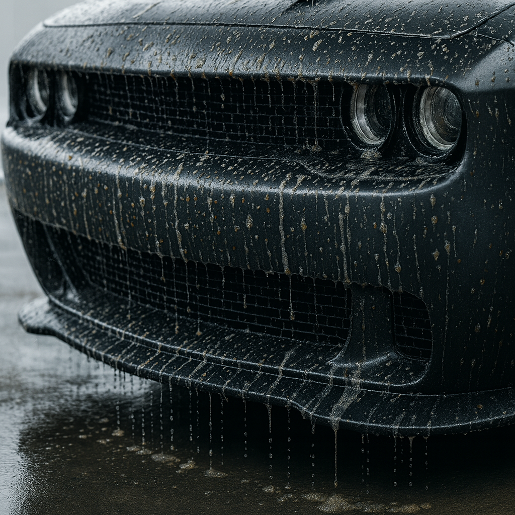 Trage den Insektenentferner auf Front, Stoßstange, Kühlergrill und Spiegel auf.