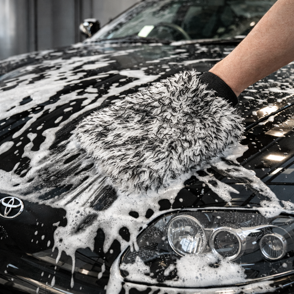 Für ein optimales Reinigungsergebnis bei der Handwäsche empfehlen wir unseren Mikrofaserhandschuh. Er sorgt für hohe Schmutzaufnahme, ist sanft zur Oberfläche und liegt angenehm in der Hand.