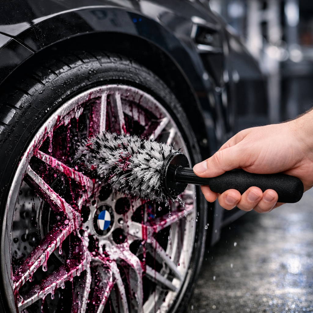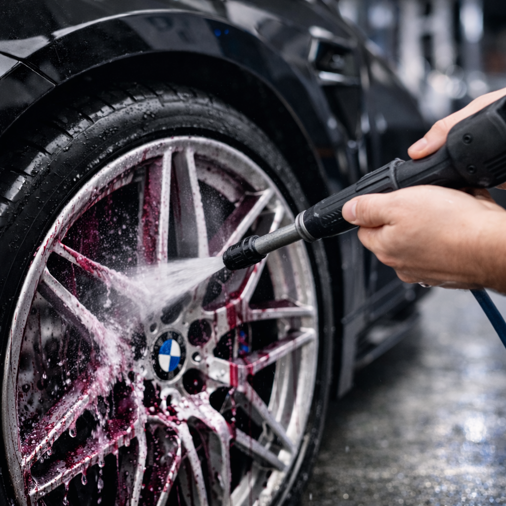 So erkennst du ganz einfach, wo Bremsstaub und Schmutz sitzen und wo der Reiniger gerade arbeitet. Ideal, um gezielt nachzureinigen und ein sichtbar sauberes Felgen-Finish zu erzielen.