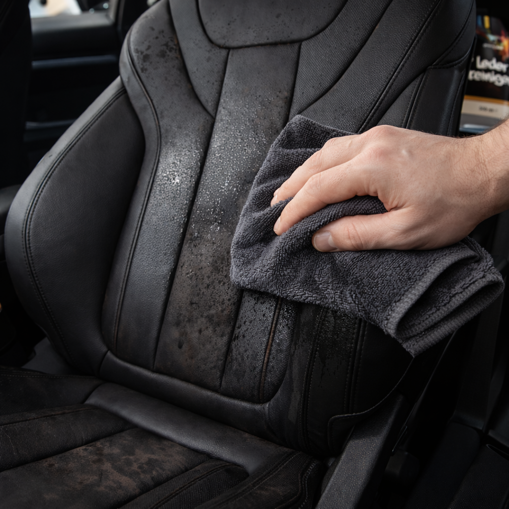 Tipp: Arbeite abschnittsweise und ohne starken Druck – besonders bei empfindlichen Lederflächen wie Sitzwangen, Lenkrad oder Armlehnen.